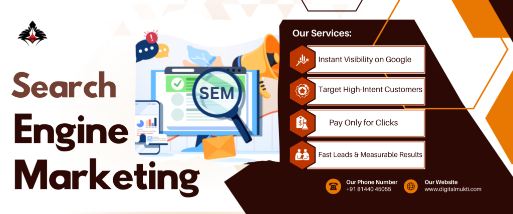 SEM mainly works on the concept of showing ads to users who are already searching for a product or service. This makes SEM highly powerful and intent-based. For example, if someone searches “best digital marketing course,” and your ad appears at the top, there is a high chance that the user is genuinely interested. Unlike organic methods that take time, SEM provides immediate visibility and results. This is why businesses use SEM when they want quick traffic, promotions, or sales.
